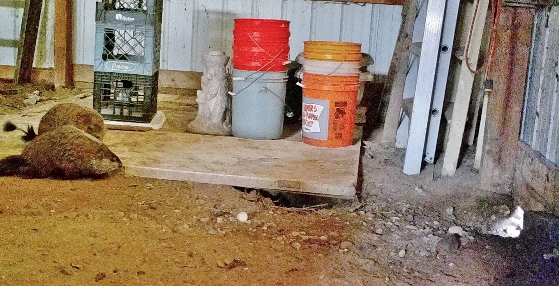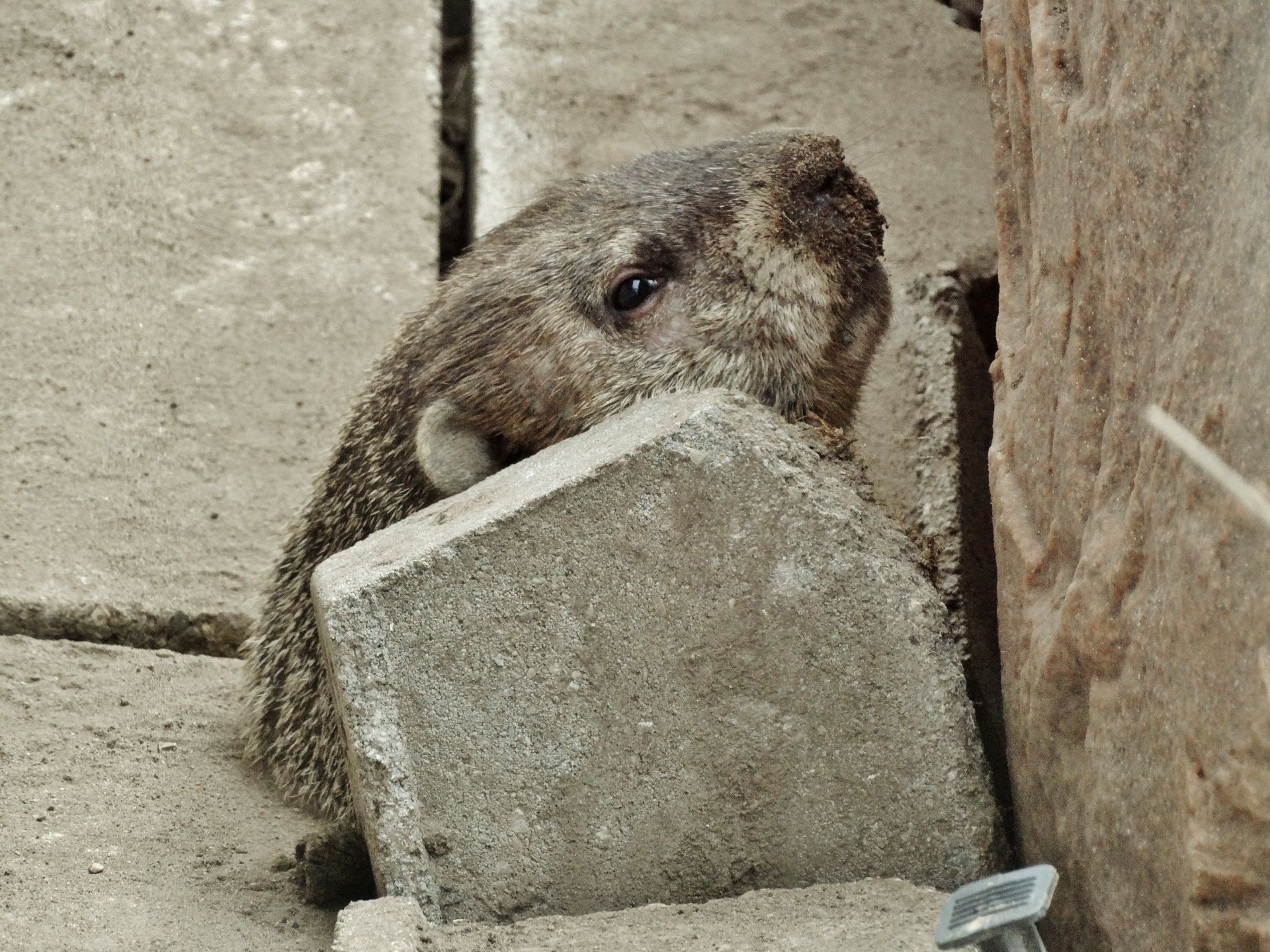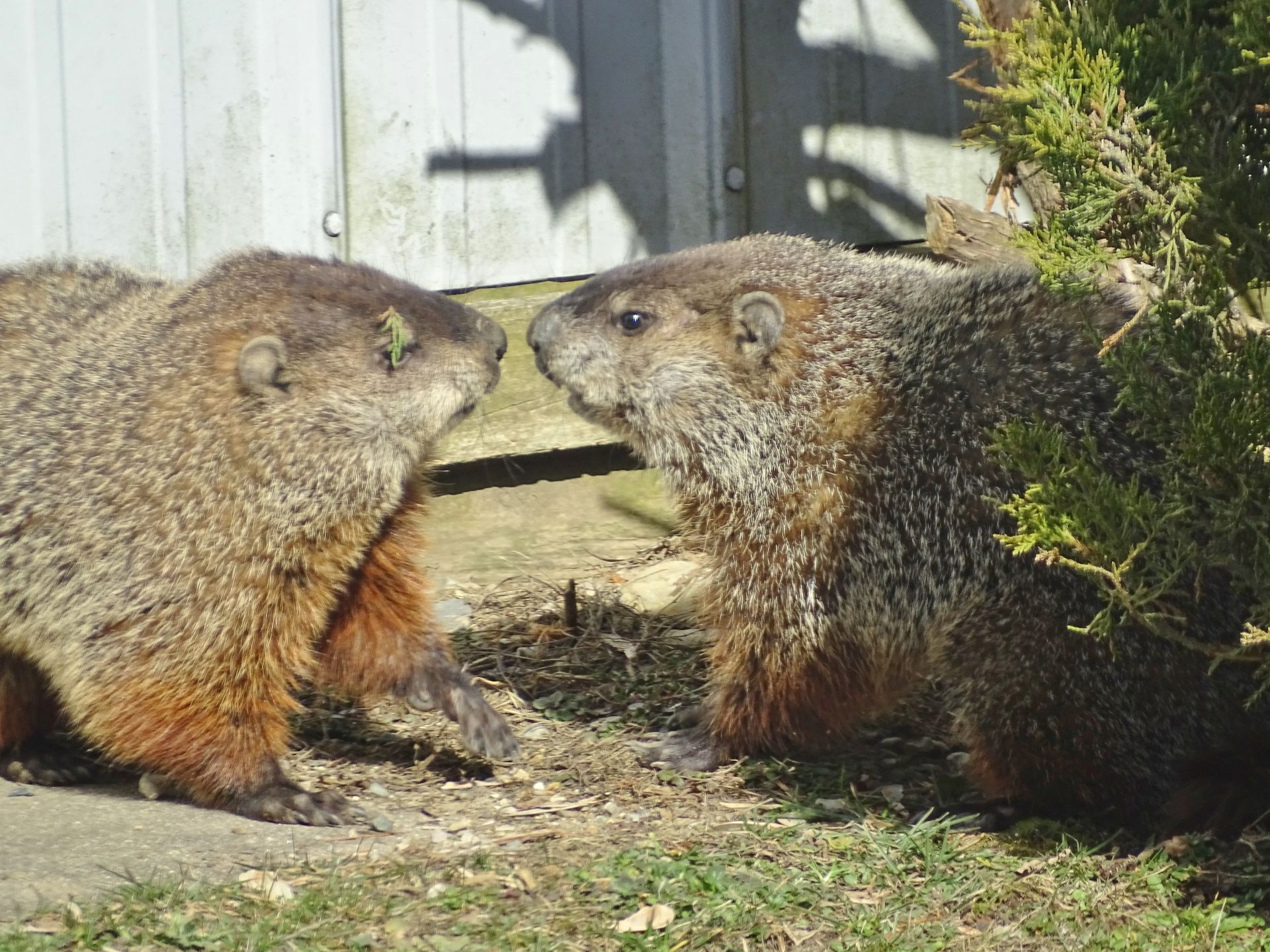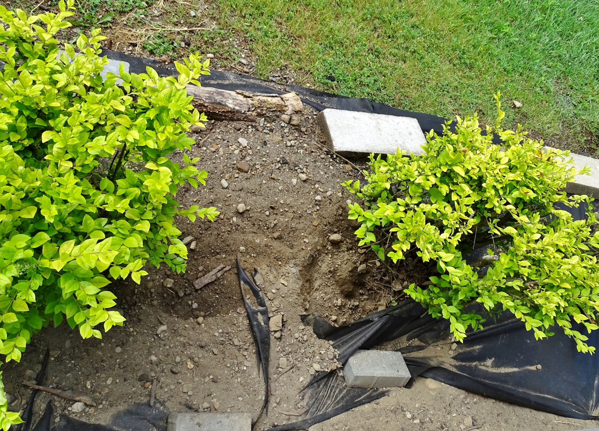 Winnie later dug a new burrow near the deck. As she already had another burrow nearby, this opening was filled in. A newer burrow north of our driveway has been observed being used by Milo, Winnie, and Rusty. This location does not create conflict with us, though it does present observation challenges.