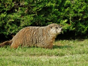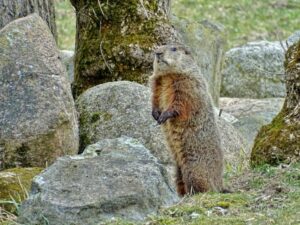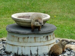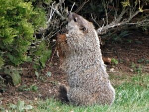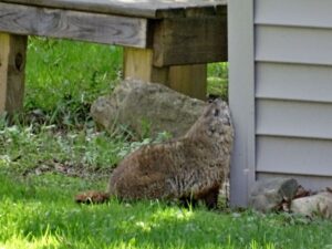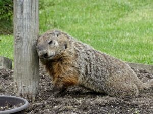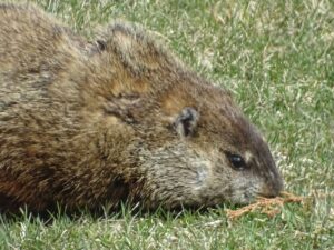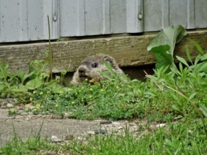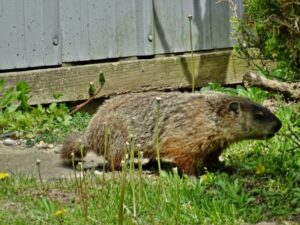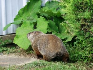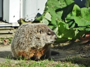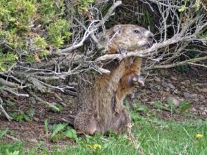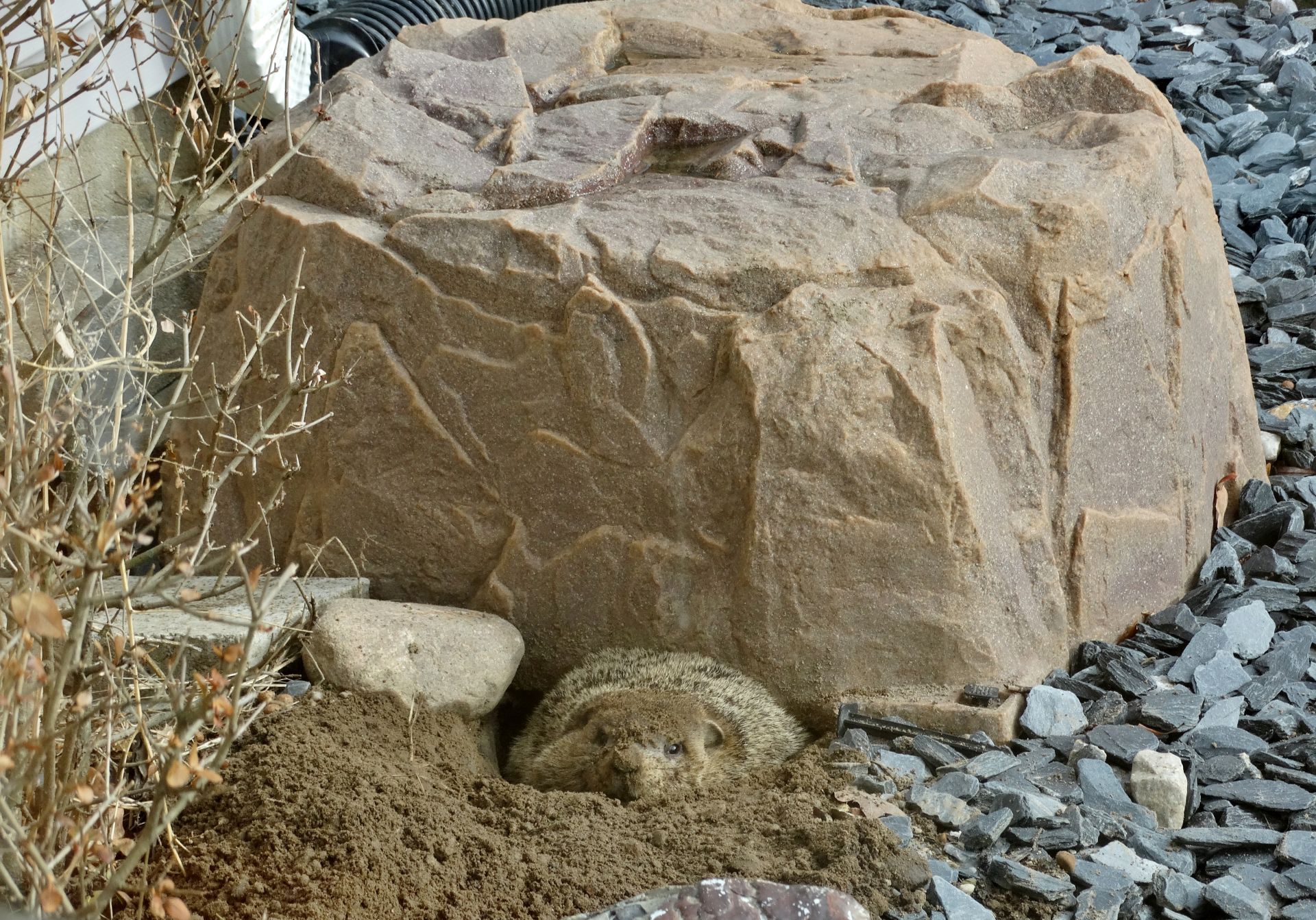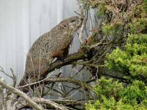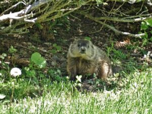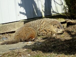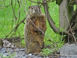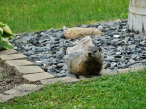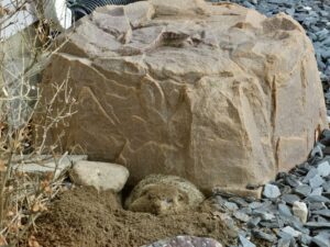 Our first groundhog sighting of the year was Rusty on March 5th. Like Milo, Rusty found the faux rock location too tempting to ignore and attempted to create a burrow beneath it. While he did manage to do some digging, he was unable to tunnel down due to the steel mesh wire we installed last year.