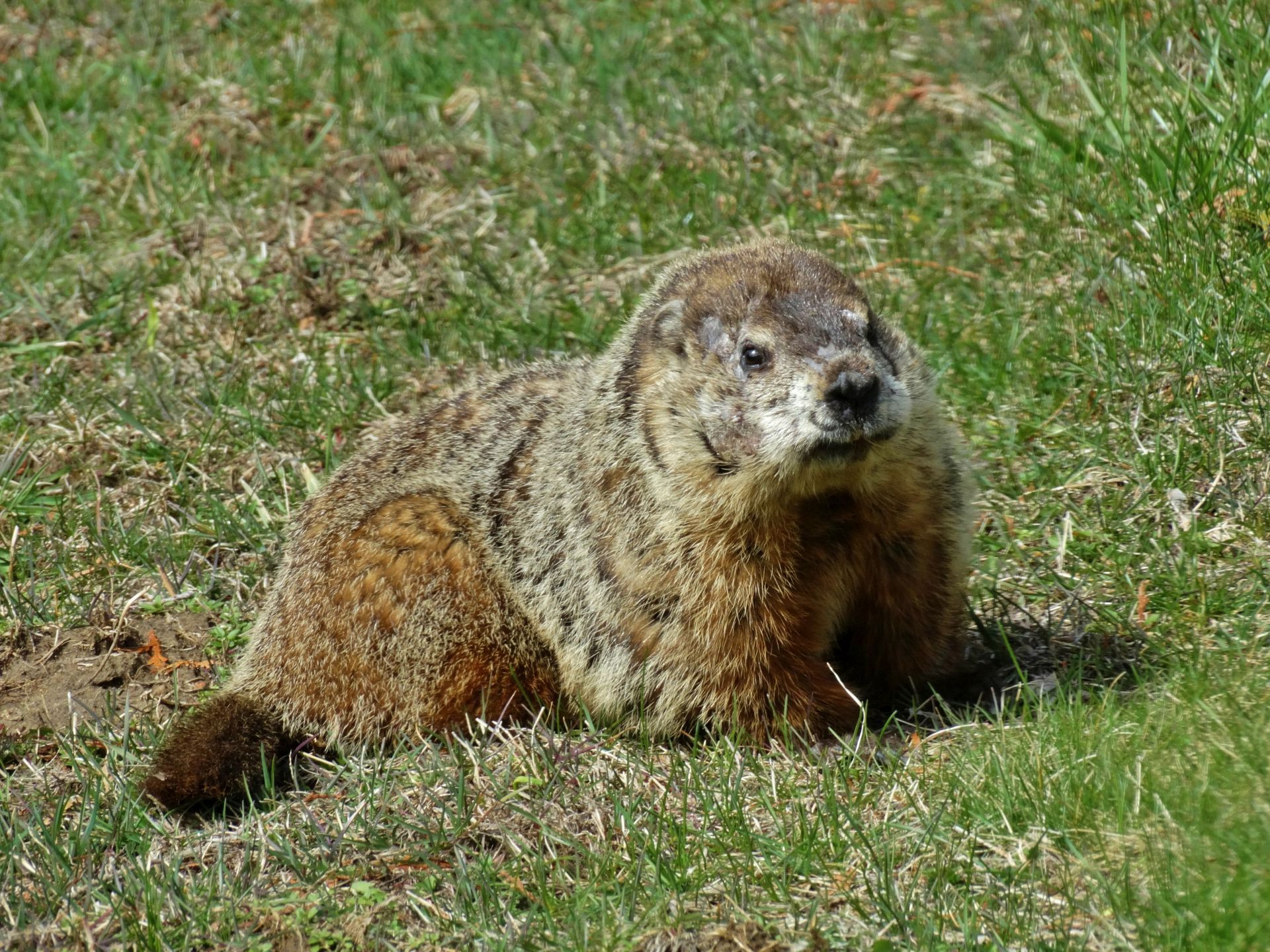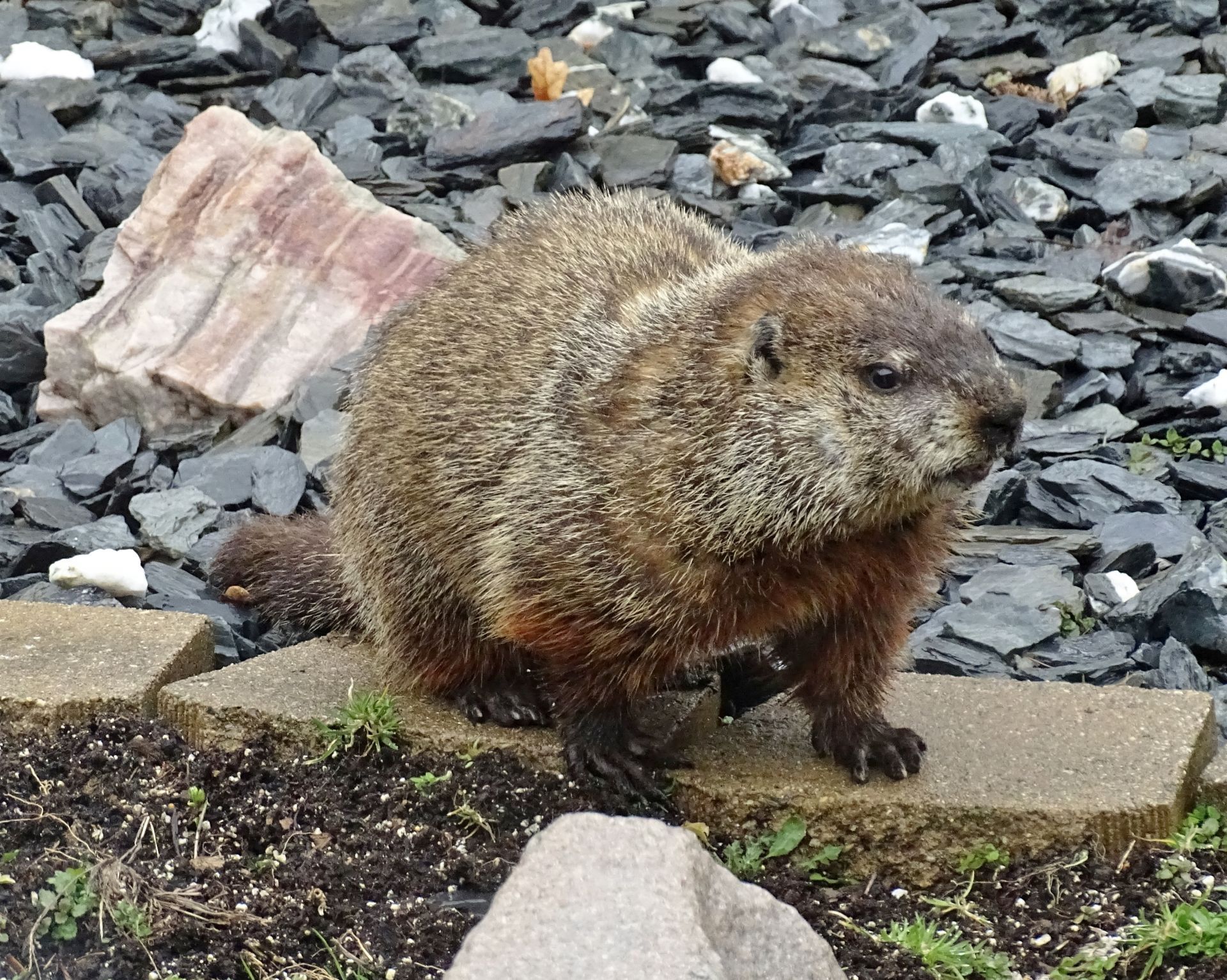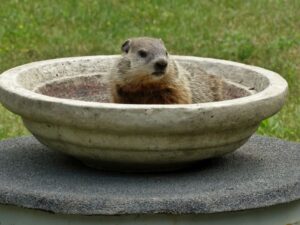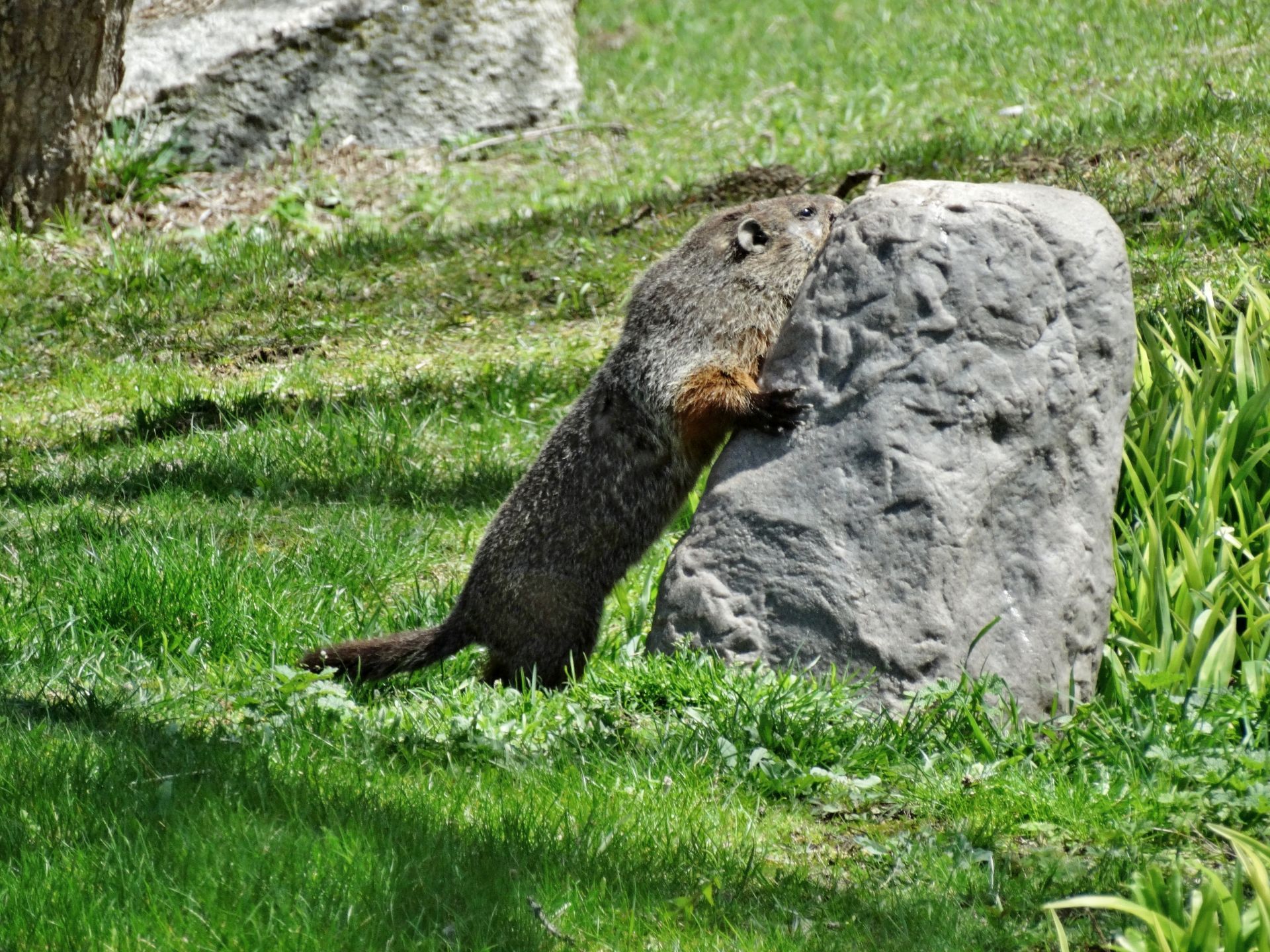 Our first groundhog sighting of the year was Rusty on March 5th. Like Milo, Rusty found the faux rock location too tempting to ignore and attempted to create a burrow beneath it. While he did manage to do some digging, he was unable to tunnel down due to the steel mesh wire we installed last year.