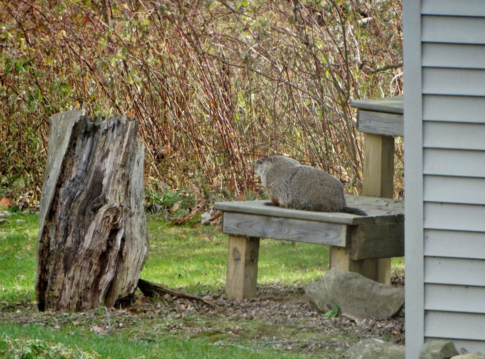 The deteriorating railing in our front yard was replaced in September. Many chucks have used the railing as an observation point, and we wanted them to continue to have that option. A new photo review determined that Rusty was the chuck seen on September 2nd. Winnie was last seen at the end of September.