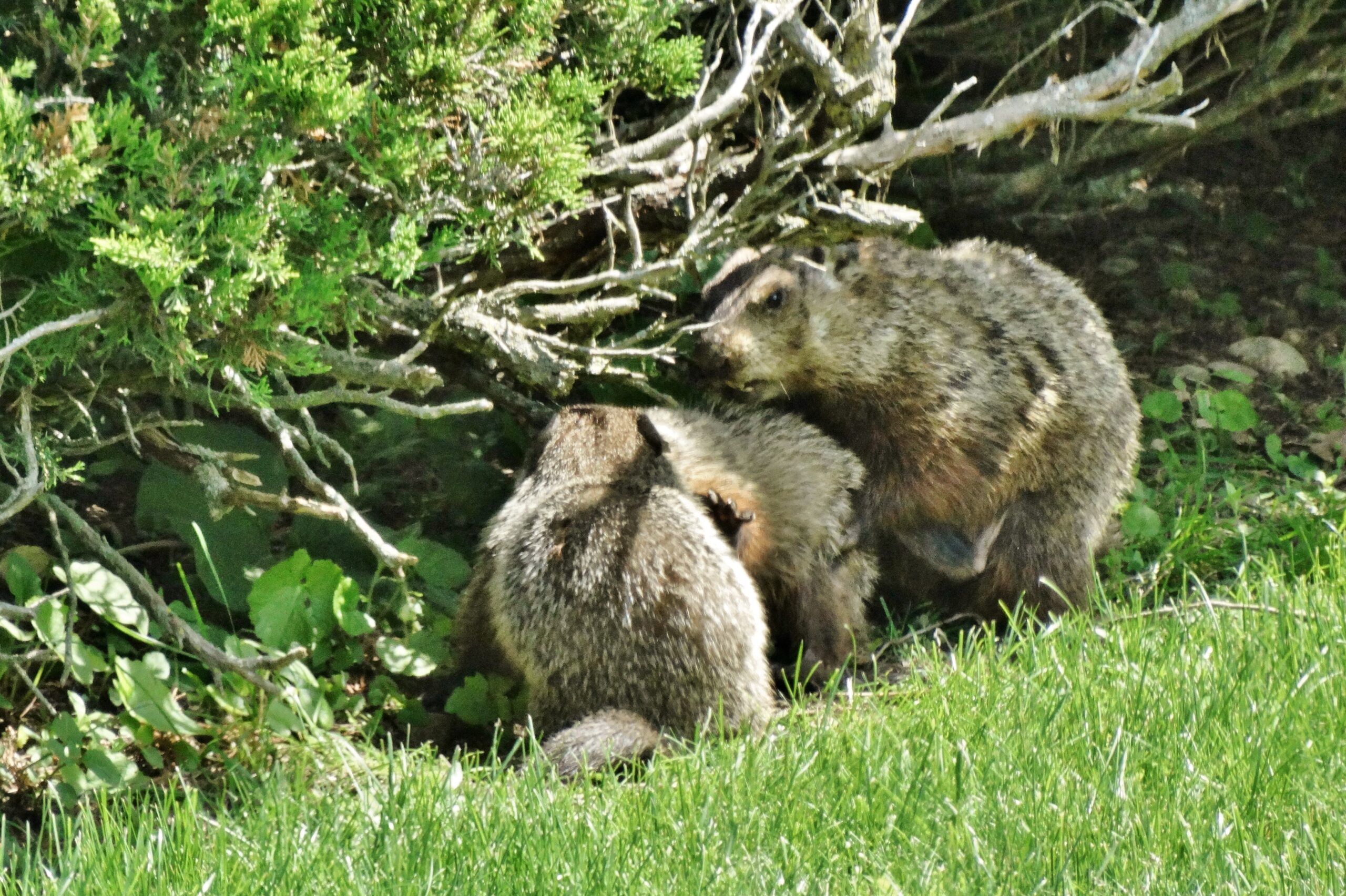 In 2022, we published a professional manuscript to my website titled “Backyard observations of the behavior and role of the male woodchuck (Marmota monax)”1 We wrote “In our seventh year observing Woodchucks, we first witnessed and recorded a male named George playing with a pup. Initial concerns that George was attacking the pup turned to relief when both proceeded to forage peacefully in the yard together. Since then, we have documented several other males interacting with the young.” We interpret these interactions as mostly playful.